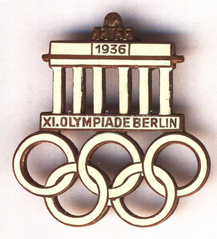 Beschreibung: Német Birodalom 1936. "XI. Olimpia - Berlin" zománcozott ötkarikás kitűző T:2