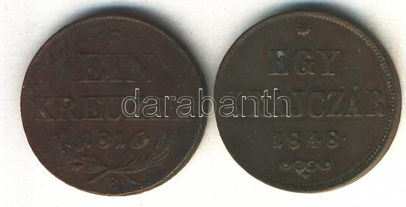 1848. 1Kr T:3 + Ausztria/magyar verdejel 1816B 1Kr T:2-/3 https://www.darabanth.com/de/170-Fernauktion/170.0/Numismatik/Ungarische-Munzen~500127/1848-1Kr-T3-plus-Ausztriamagyar-verdejel-1816B-1Kr-T2-3~II573655