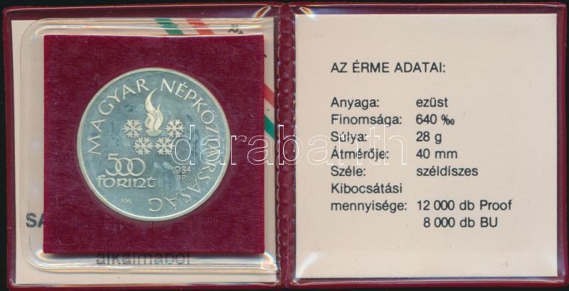 Beschreibung: 1984. 500Ft Ag "Téli Olimpia / Sarajevo" T:PP Dísztokban tanúsítvánnyal