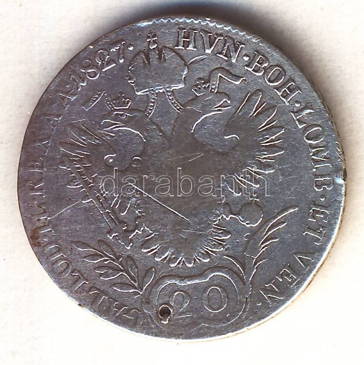 Ausztria/magyar verdejel 1827E 20Kr Ag T:3 https://www.darabanth.com/de/170-Fernauktion/170.0/Numismatik/Ungarische-Munzen~500127/Ausztriamagyar-verdejel-1827E-20Kr-Ag-T3-3Cbr3E~II574646