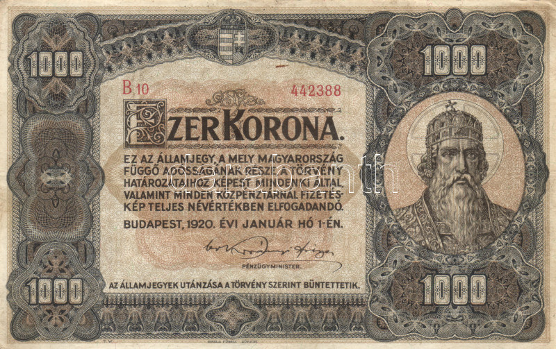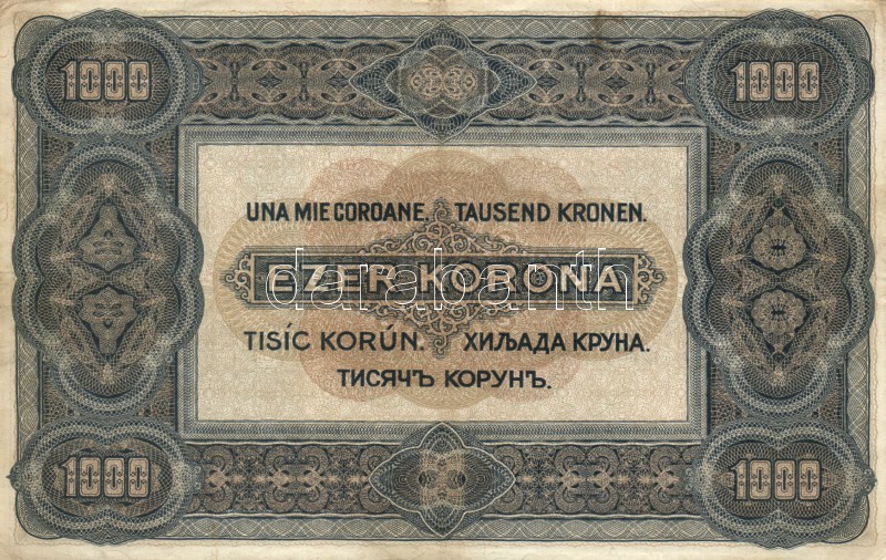 1920. 1000K "Orell Füssli Zürich" T:II- https://www.darabanth.com/de/170-Fernauktion/170.0/Numismatik/Ungarische-banknoten~500126/1920-1000K-Orell-Fussli-Zurich-TII-~II572189