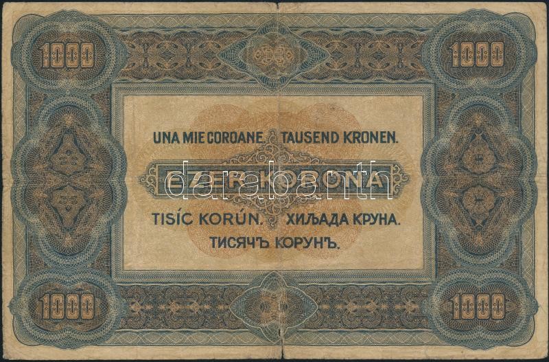1920. 1000K "Orell Füssli Zürich" T:IV https://www.darabanth.com/de/170-Fernauktion/170.0/Numismatik/Ungarische-banknoten~500126/1920-1000K-Orell-Fussli-Zurich-TIV~II554085