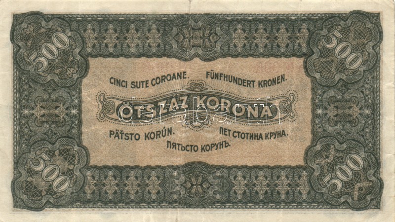 1923. 500K "Magyar Pénzjegynyomda Rt.." T:III https://www.darabanth.com/de/170-Fernauktion/170.0/Numismatik/Ungarische-banknoten~500126/1923-500K-Magyar-Penzjegynyomda-Rt-TIII~II572181