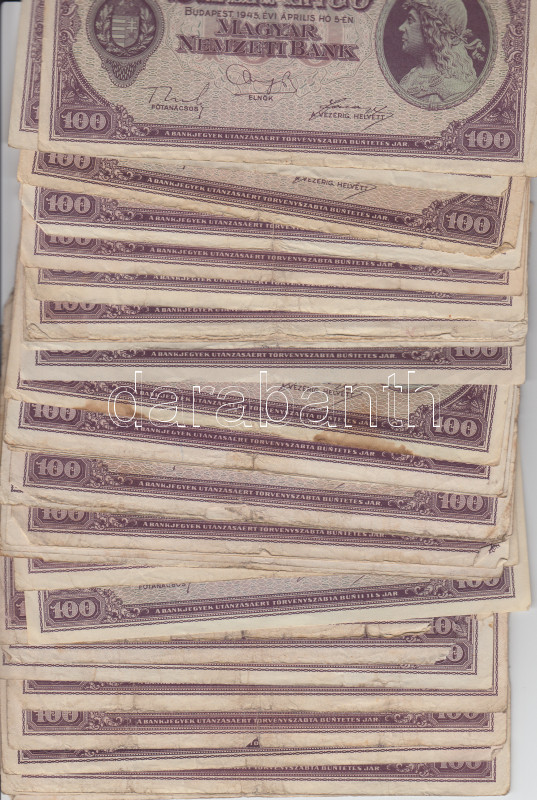 1945. 100P (~50x) T:vegyes https://www.darabanth.com/de/170-Fernauktion/170.0/Numismatik/Ungarische-banknoten~500126/1945-100P-7E50x-Tvegyes~II568201