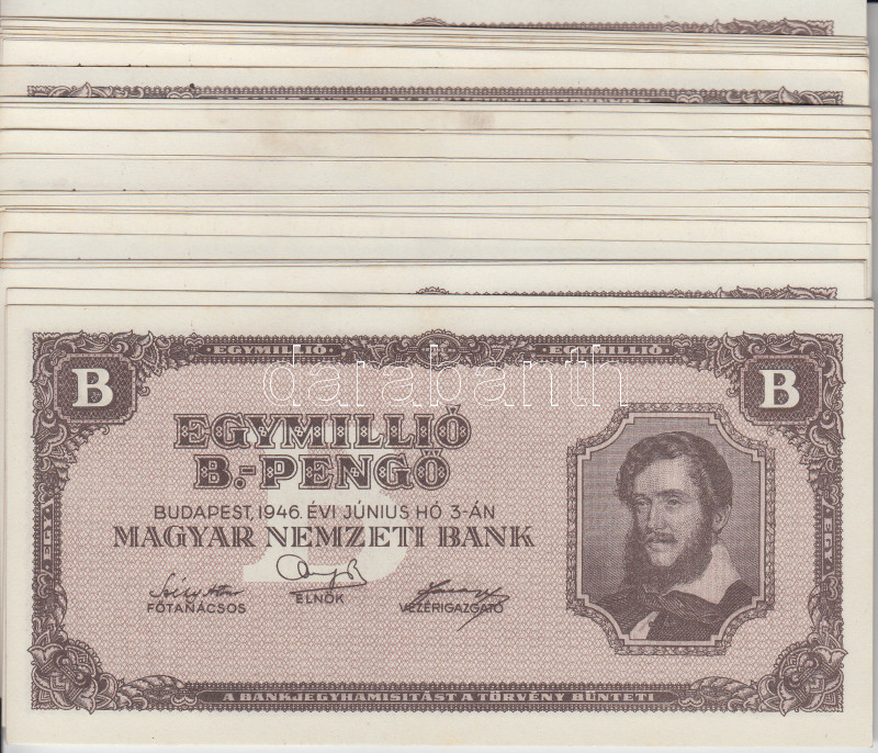 1946. 1.000.000BP (30x) hajtatlan T:I,I- (sarokhajlás, nyomdai folt) https://www.darabanth.com/de/170-Fernauktion/170.0/Numismatik/Ungarische-banknoten~500126/1946-1000000BP-30x-hajtatlan-TI-I-sarokhajlas-nyomdai-folt~II568702