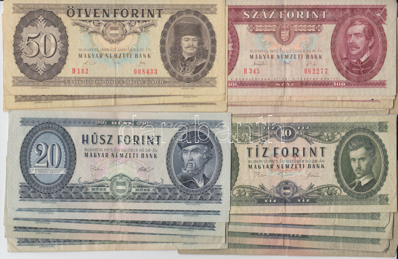 1949-1993. 10Ft + 20Ft + 50Ft + 100Ft. Összesen 20db kizárólag klf évs... https://www.darabanth.com/de/170-Fernauktion/170.0/Numismatik/Ungarische-banknoten~500126/1949-1993-10Ft-plus-20Ft-plus-50Ft-plus-100Ft-Osszesen-20db-kizarolag-klf-evszam-Tvegyes~II568793