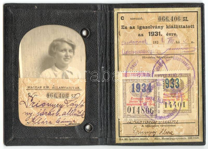 1931 Mo. Királyi Államvasutak, félárú jegy igazolvány https://www.darabanth.com/de/171-Fernauktion/171.0/Andere-Sammelgebiete/Dokument~1000028/1931-Mo-Kiralyi-Allamvasutak-felaru-jegy-igazolvany~II579197