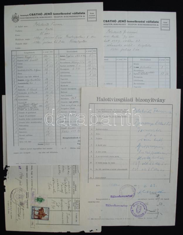 Beschreibung: Polákovics Ferenc ny. körjegyző és földbirtokos valamint feleségének halotti értesítője, köszönő kártyák és 5 db halálozással kapcsolatos okmány