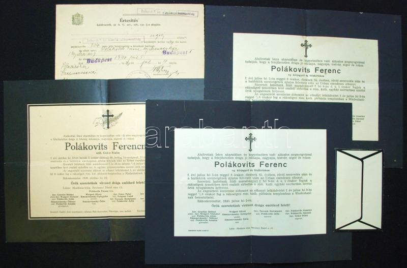 Polákovics Ferenc ny. körjegyző és földbirtokos valamint feleségének h... https://www.darabanth.com/de/171-Fernauktion/171.0/Andere-Sammelgebiete/Dokument~1000028/Polakovics-Ferenc-ny-korjegyzo-es-foldbirtokos-valamint-felesegenek-halotti-ertesitoje-k~II579365