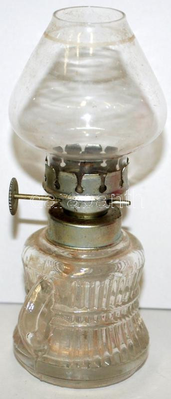 Beschreibung: Kis régi üveg petróleumlámpa fogantyúval /