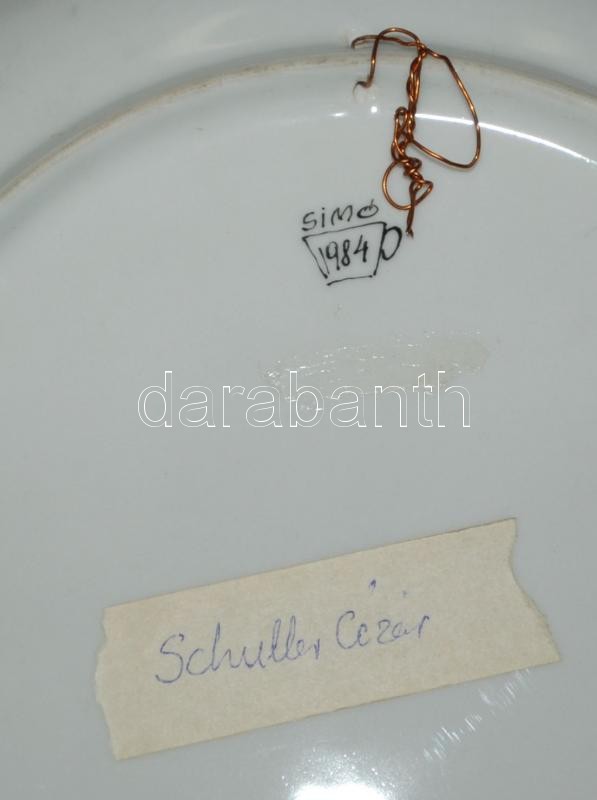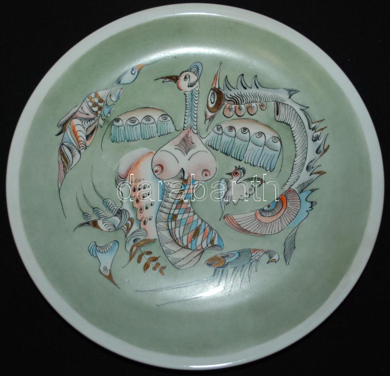Beschreibung: Simó Ágoston (1925-2011): Szex. Egyedi mintázatú, kézzel festett, jelzett dísztányér /