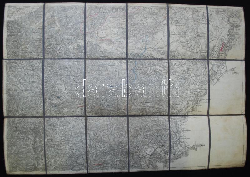 Beschreibung: Lombard-Venecia, Janina és Bjelina, Janja, 3 db első világháborús katonai térkép vászonra kasírozva.