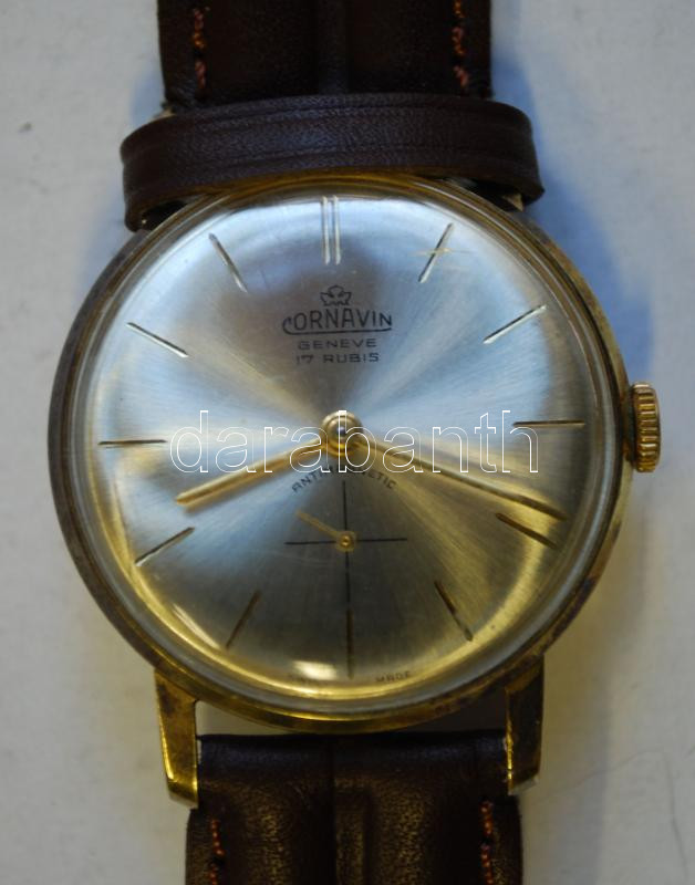 cca 1940 Cornavin 12 köves Antimagnetic, másodpercmutatós svájci karóra hibátlan számlappal, új bőr szíjjal. Kiválóan működik. / Swiss watch. Works well