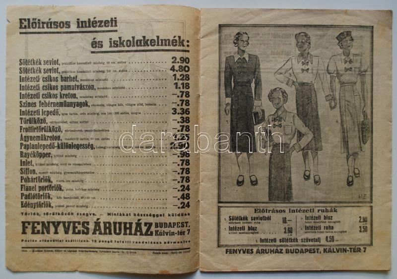 Cca 1930 Fenyves Áruház iskolaárjegyzéke https://www.darabanth.com/de/171-Fernauktion/171.0/Andere-Sammelgebiete/Werbungen~1000035/Cca-1930-Fenyves-Aruhaz-iskolaarjegyzeke~II580205