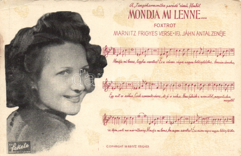Mondja mi lenne....foxtrot kottás lap (EB) https://www.darabanth.com/de/171-Fernauktion/171.0/Ansichtskarten/Musiker~1000124/Mondja-mi-lennefoxtrot-kottas-lap-EB~II577274
