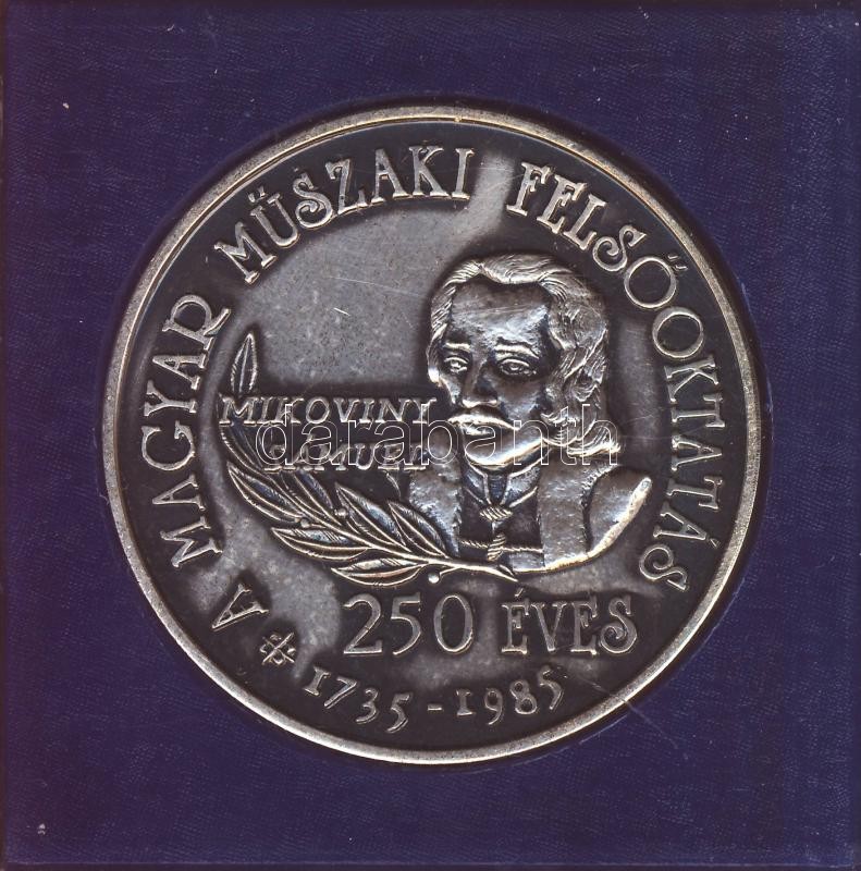 Bognár György (1944-) 1985. A Magyar Műszaki Felsőoktatás 250 éves - M... https://www.darabanth.com/de/171-Fernauktion/171.0/Numismatik/Ungarische-Edelmetall-Gedenkmunzen-und-Plaketten~1000136/Bognar-Gyorgy-1944-1985-A-Magyar-Muszaki-Felsooktatas-250-eves--Mikoviny-Samuel-fem-em~II580133