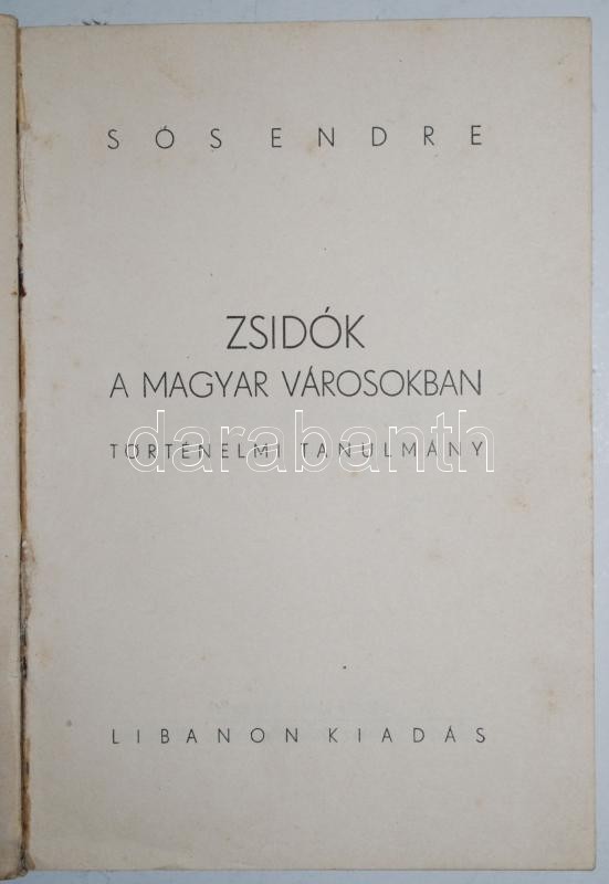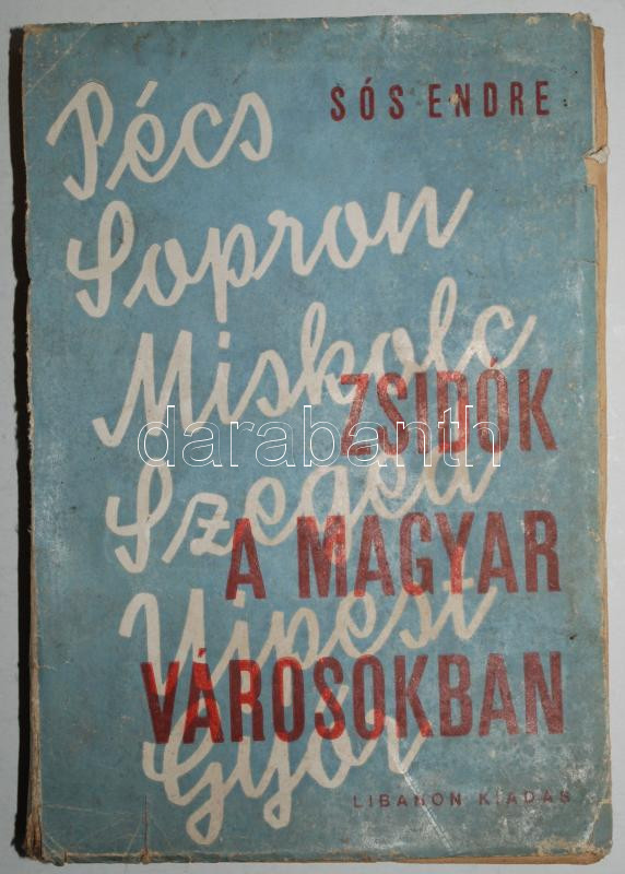 Sós Endre: Zsidók a magyar városokban. Bp., é.n., Libanon Kiadás. Kiss... https://www.darabanth.com/de/172-Fernauktion/172.0/Andere-Sammelgebiete/Bucher-Judaica~500032/Sos-Endre-Zsidok-a-magyar-varosokban-Bp-en-Libanon-Kiadas-Kisse-megviselt-papirkote~II584449