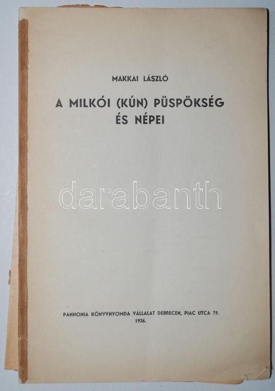 Makkai László: A milkói (kún) püspökség és népei. Debrecen, 1936, Pann... https://www.darabanth.com/de/172-Fernauktion/172.0/Andere-Sammelgebiete/Bucher-Religion~500031/Makkai-Laszlo-A-milkoi-kun-puspokseg-es-nepei-Debrecen-1936-Pannonia-Konyvnyomda-62~II585033