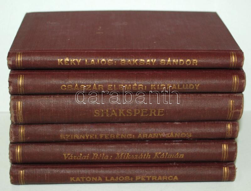 Költők és írók - Élet és jellemrajzok az irodalom köréből 6db kötet: P... https://www.darabanth.com/de/172-Fernauktion/172.0/Andere-Sammelgebiete/Bucher-Sonstige-Raritaten~500039/Koltok-es-irok--Elet-es-jellemrajzok-az-irodalom-korebol-6db-kotet-Petrarca-Mikszath-~II563728