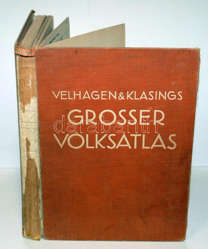 Beschreibung: Velhagen & Klasings: Grosser Volksatlas, Bielefeld und Leipzig, 1938, herausgegeben Dr. Konrad Frenzel, kiadói egészvászon kötésben, a gerinc hiányzik