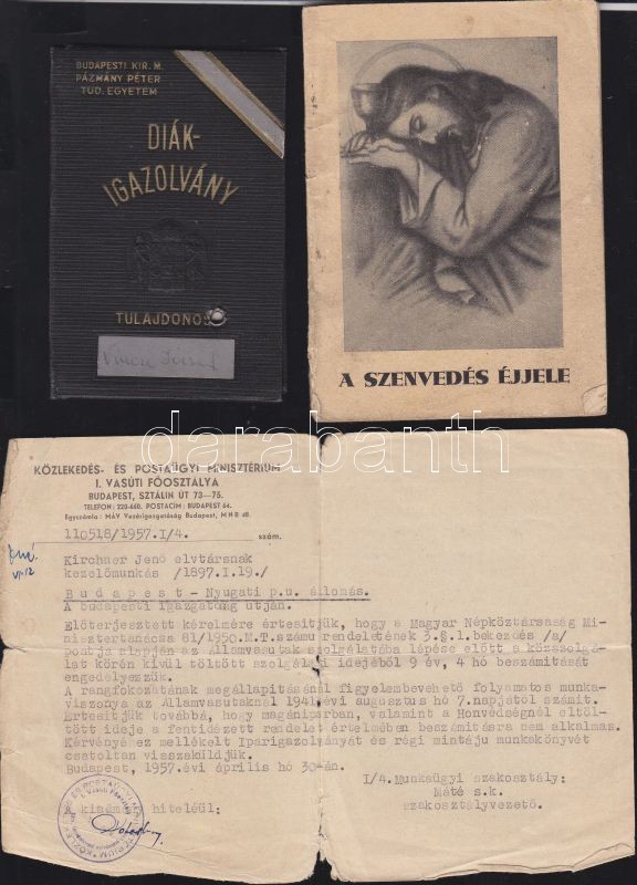 Vegyes hagyaték tétel, okmányok, (rendkívüli joghallgató leckekönyve) ... https://www.darabanth.com/de/172-Fernauktion/172.0/Andere-Sammelgebiete/Dokument~500015/Vegyes-hagyatek-tetel-okmanyok-rendkivuli-joghallgato-leckekonyve-nehany-foto~II404375