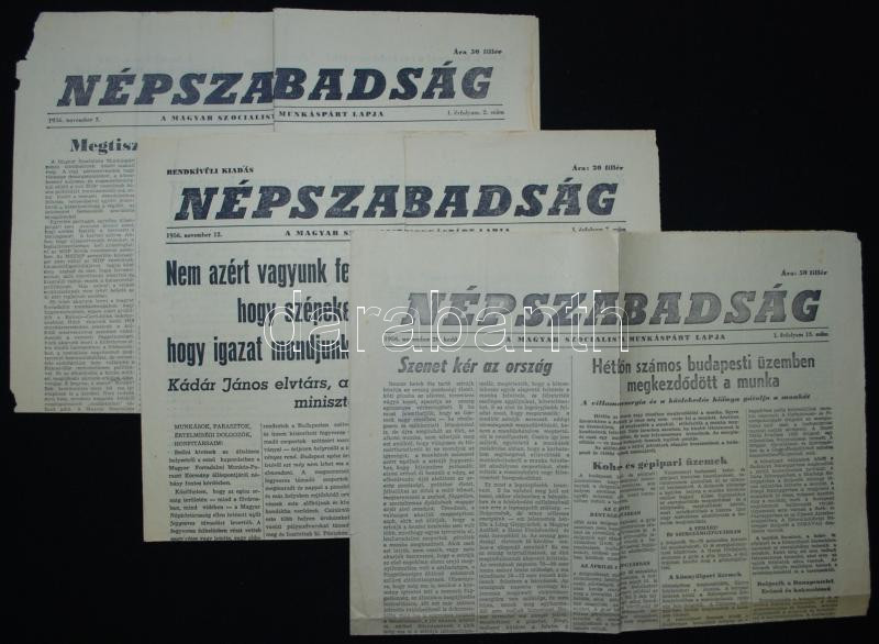 1956. nov. 3./12./20. A Népszabadság 3 száma a forradalom híreivel https://www.darabanth.com/de/172-Fernauktion/172.0/Andere-Sammelgebiete/Drucksachen~500024/1956-nov-31220-A-Nepszabadsag-3-szama-a-forradalom-hireivel~II585270