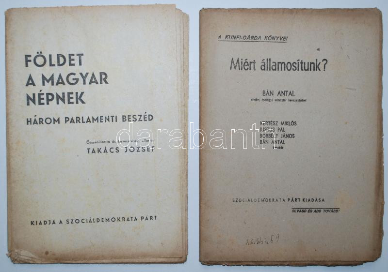 Miért államosítunk? Földet a magyar népnek. Szociáldemokrata Párt kiad... https://www.darabanth.com/de/172-Fernauktion/172.0/Andere-Sammelgebiete/Drucksachen~500024/Miert-allamositunk-Foldet-a-magyar-nepnek-Szocialdemokrata-Part-kiadvanyai~II584392