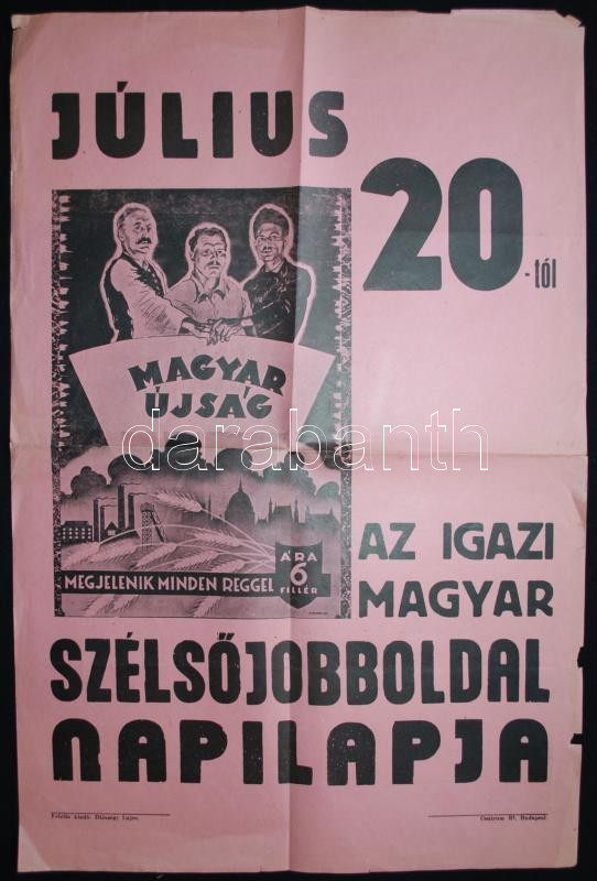 cca 1939 Magyar Újság szélsőjobboldali napilap plakát. 30x40 cm https://www.darabanth.com/de/172-Fernauktion/172.0/Andere-Sammelgebiete/Drucksachen~500024/cca-1939-Magyar-Ujsag-szelsojobboldali-napilap-plakat-30x40-cm~II587197