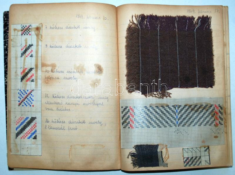 1948-1949 Kötéstan, szövetelemzés - tanfolyami írásos jegyzetek minták... https://www.darabanth.com/de/172-Fernauktion/172.0/Andere-Sammelgebiete/Flohmarkt~500001/1948-1949-Kotestan-szovetelemzes--tanfolyami-irasos-jegyzetek-mintakkal~II583634