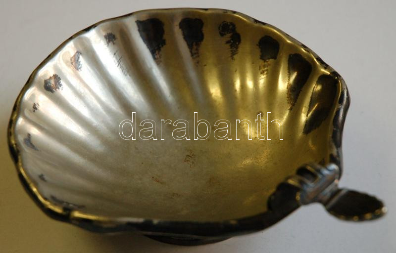 Beschreibung: Cca 1900 Szandrik jelzéssel, alpakka, szecessziós kagyló formájú kínálótál, szélessége: 12 cm
