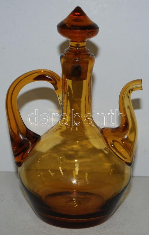 Handmade glass oil bottle, 16cm https://www.darabanth.com/de/172-Fernauktion/172.0/Andere-Sammelgebiete/Flohmarkt~500001/Sarga-szakitottuveg-olajkionto--3Cbr3EHandmade-glass-oil-bottle-16cm~II582150