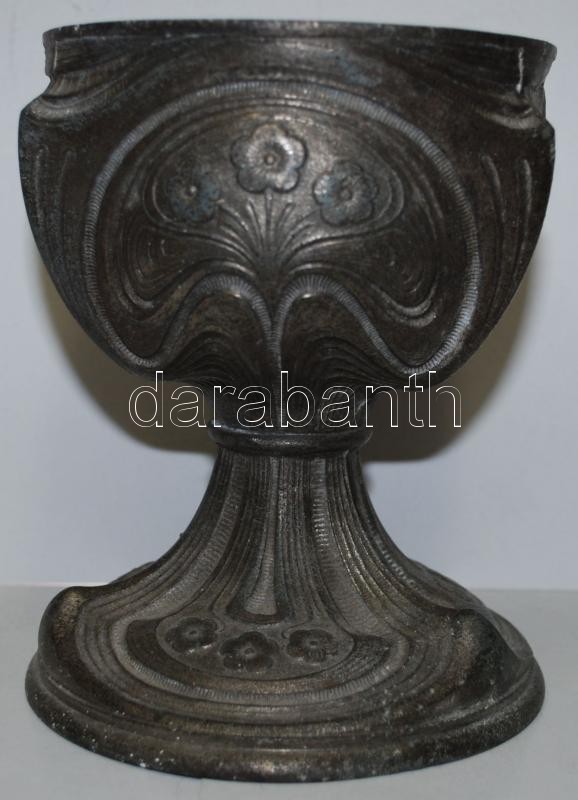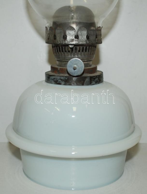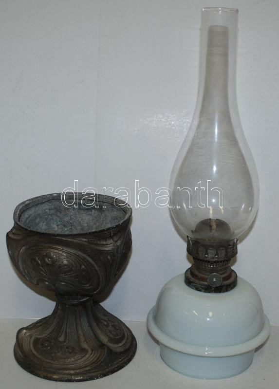 Beschreibung: Szecessziós fém aljú porcelán petróleumlámpa burával /