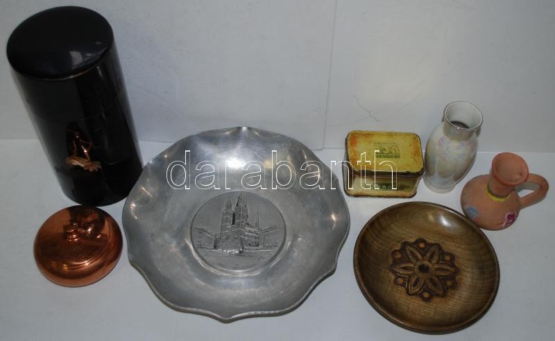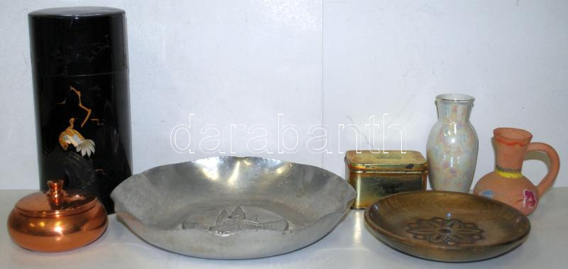 Beschreibung: Vegyes bolhatétel: Összesen hét darab köztük, Hollóházi vázácska, japán teás doboz, stb.