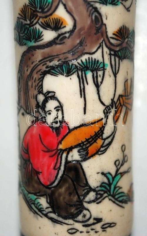 Vésett, kézzel festett csont vázácska, és egy 2 személyes porcelán szakés készlet /
