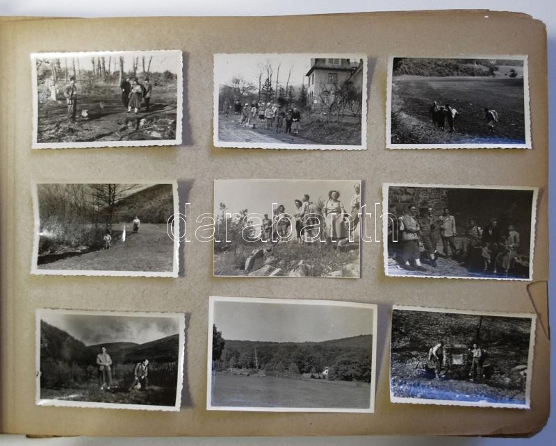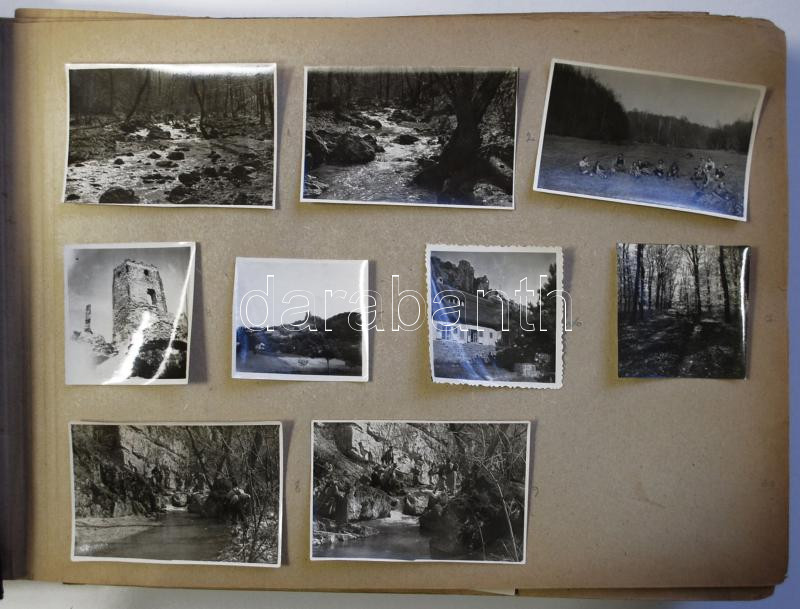 Beschreibung: cca 1940 Legalább 400 darab képet tartalmazó fotóalbum Kárpát-medencei táj és városképekkel, csládi fotókkal