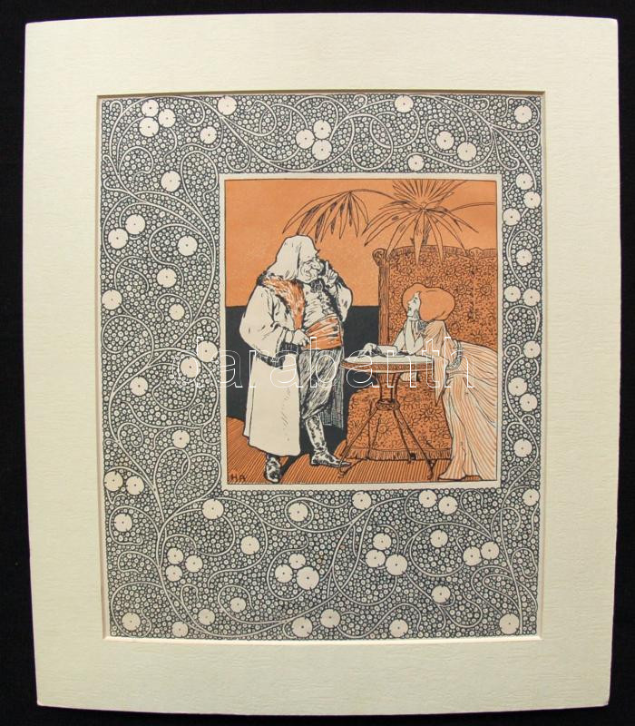 ~1910 Hornyánszky Andor: Csábítás, szecessziós litográfia paszpartuban... https://www.darabanth.com/de/172-Fernauktion/172.0/Andere-Sammelgebiete/Gemalde-und-Grafiken~500002/7E1910-Hornyanszky-Andor-Csabitas-szecesszios-litografia-paszpartuban-31x36-cm~II506041