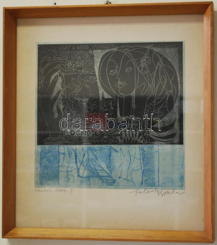 Beschreibung: Feledy Gyula (1928-): Énekek éneke VI, rézkarc, papír, jelzett, 49×43 cm, üvegezett keretben