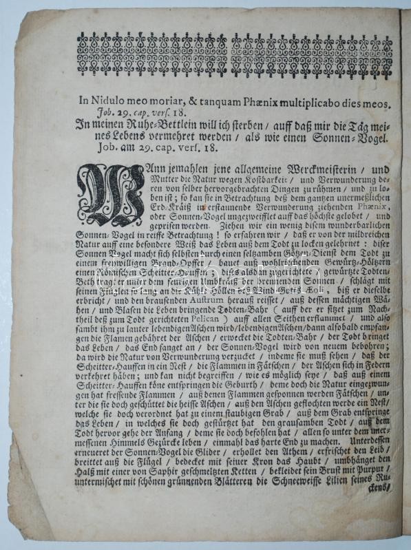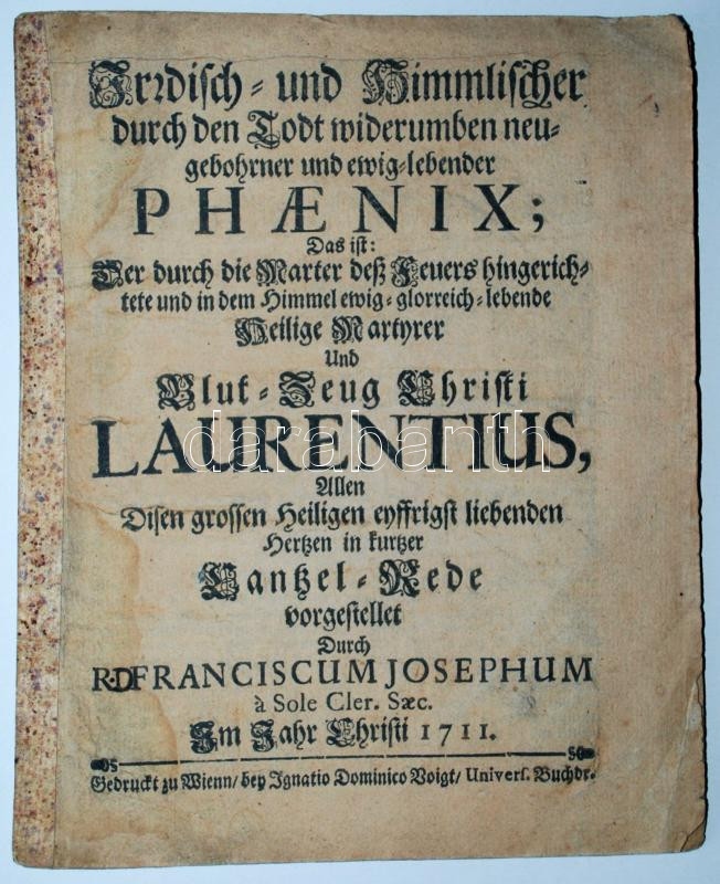 Beschreibung: Franciscum Josephum: Irdisch und Himmlischer durch den Todt wiederumben neugebohrener und evig lebender Phaenix... Wienn, 1711. Univers. Buchdr. 8 p.