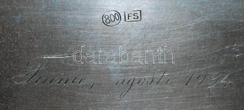 Beschreibung: Art-deco ezüst cigarettatartó, jelzett, belül "Fiume, agosto 1934" felirattal, 7×6 cm s:53 gr