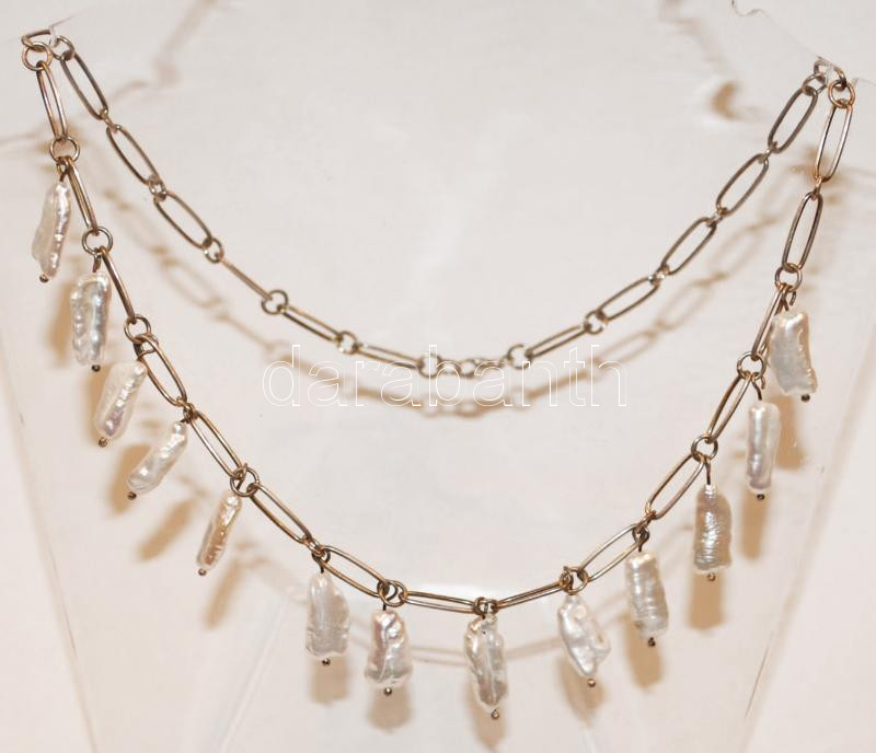 Beschreibung: Ezüst (Ag) nyaklánc biwa-gyöngyökkel /