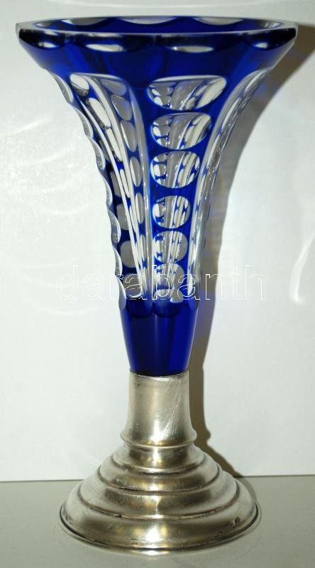 Beschreibung: Ezüst talpas, kobalt kék, kristály kehely, jelzett, hibátlan, m:20 cm, d:9 cm