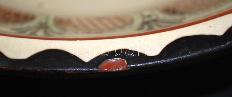 Beschreibung: Karcagi fali madaras dísztányér, kézzel festett, jelzett, apró lepattanás a szélén, d:32 cm