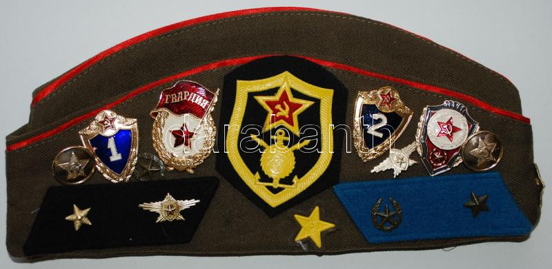 Orosz pilotka jelvényekkel, rangjelzésekkel, gombokkal https://www.darabanth.com/de/172-Fernauktion/172.0/Andere-Sammelgebiete/Militaria~500022/Orosz-pilotka-jelvenyekkel-rangjelzesekkel-gombokkal~II585243