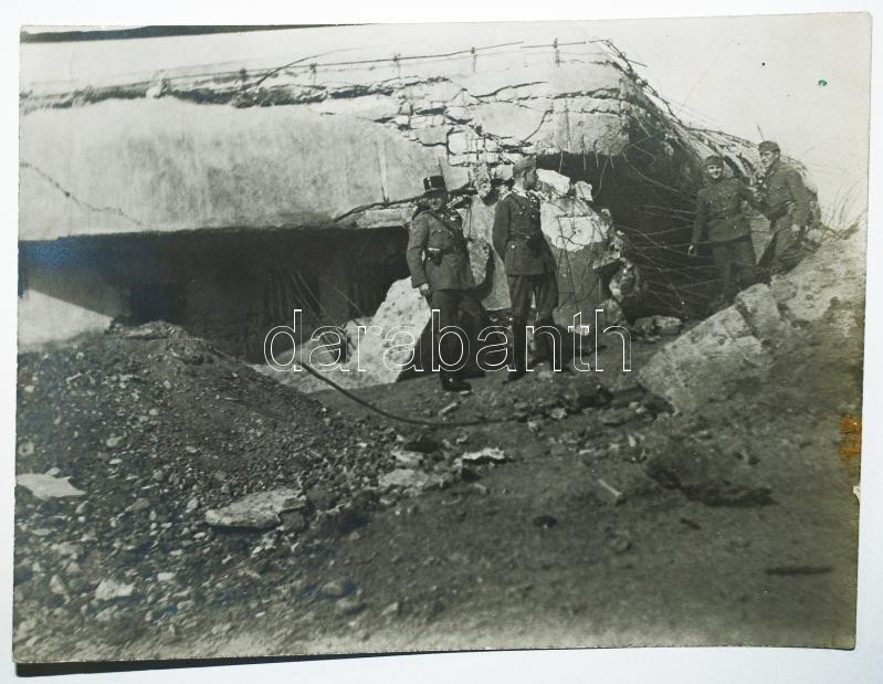 Beschreibung: cca 1916 I. világháborús harctéri fotó tisztekkel /