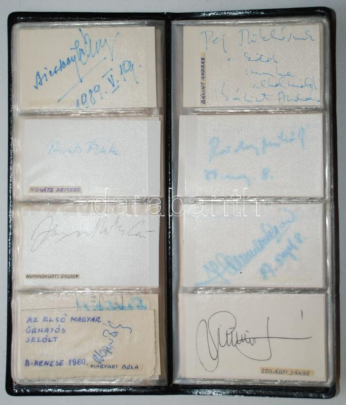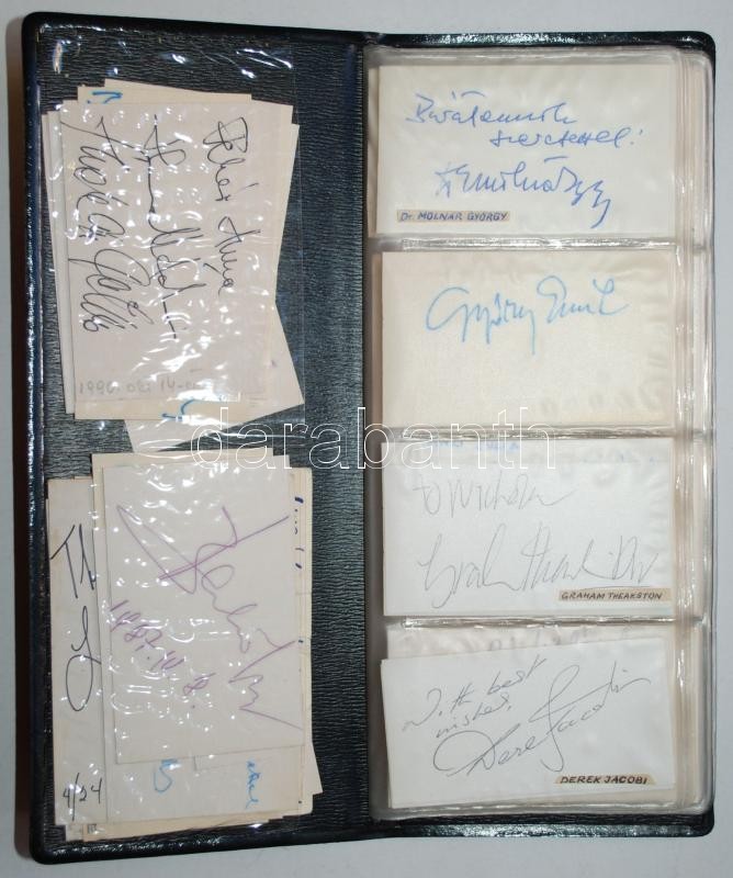 Beschreibung: 114db-os autogramgyűjtemény berakóba rendezve, többek között Derek Jacobi, Német Sándor, Szandi, Vágó István, Komlós Juci etc. aláírásával