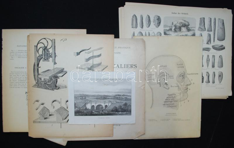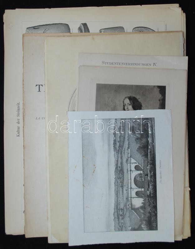 Beschreibung: Vegyes tétel régi fametszetekkel, cinkográfiákkal, lithográfiával