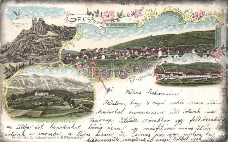 Avtovac with military barracks litho (EK) https://www.darabanth.com/de/172-Fernauktion/172.0/Ansichtskarten/Bosnien-Herzegowina~5000019/Avtovac-with-military-barracks-litho-EK~II587100
