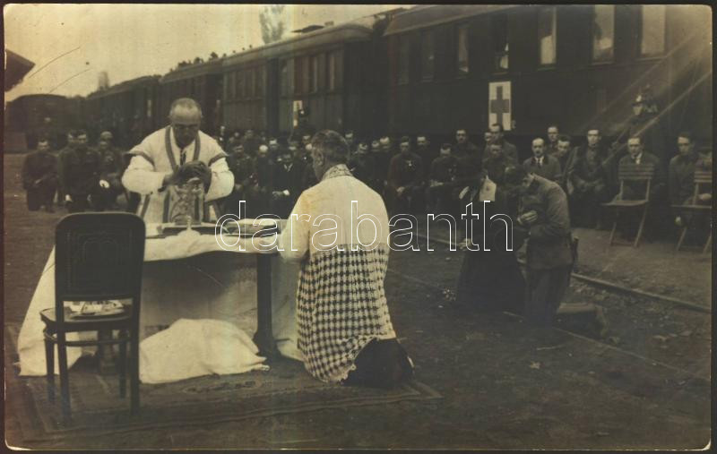 1921 Biatorbágy vasútállomás, IV. Károly és Zita utolsó útja Magyarországra, tábori mise, photo / The last visit of Charles IV and Zita to Hungary, prayer, photo