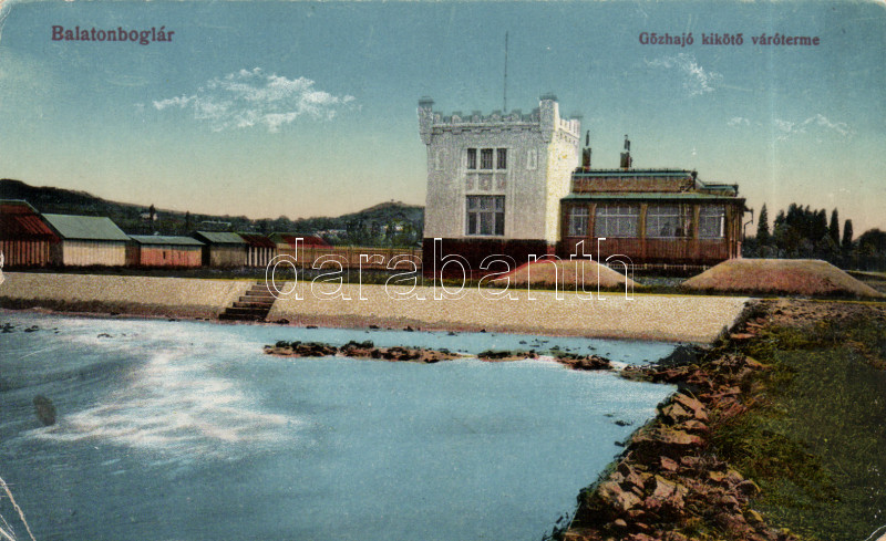 Balatonboglár gőzhajó kikötő váróterme, Divald & Monostory https://www.darabanth.com/de/172-Fernauktion/172.0/Ansichtskarten/Ungarn~5000005/Balatonboglar-gozhajo-kikoto-varoterme-Divald-Monostory~II582447
