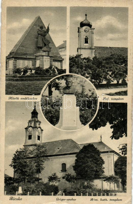 Bicske Hősök emlékműve, Református templom, Griger szobor (EK) https://www.darabanth.com/de/172-Fernauktion/172.0/Ansichtskarten/Ungarn~5000005/Bicske-Hosok-emlekmuve-Reformatus-templom-Griger-szobor-EK~II583065